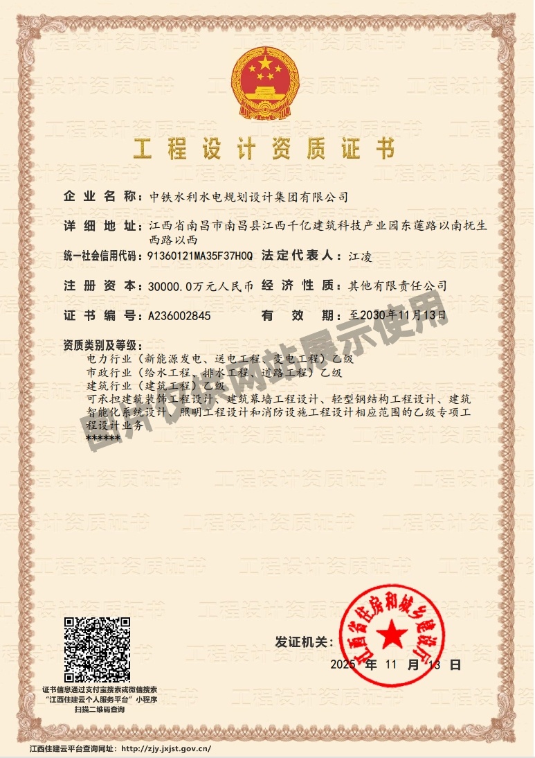 • 水保方案编制单位水平评价证书(五星)